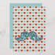 MUSTACHE AZUL, DIVERTIDA, RETRO, COM EFEITO DE GLITTER IMPRESSO NUM PADRÃO DE CORAÇÃO VERMELHO E AZUL. UMA MENINA, DESIGN TRENDY PARA ELA.