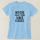 Maybe everyone else in your life suspects you're bipolar or have OCD, but your dog never questions your mental health. In fact, your dog can't find ANYTHING about you not to love! Proudly display your dog's professional diagnosis (MY DOG DOESN'T THINK I HAVE ISSUES) with this light-hearted tank top. Tiny blue pup peeks out from behind the “D.” Bold black type pops against your choice of shirt color. Or put this design on any style shirt from tees to sweats!