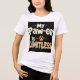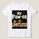 This image is a repetition of the third design, featuring the phrase "MY PAW-ER IS LIMITLESS" with the same playful fonts and paw print symbol. The design remains consistent, emphasizing the strength and limitless potential of pets. The white background with orange and yellow text creates a clean and uplifting look.