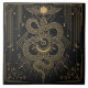 Embrace the cosmic energy with this stunning Mystic Gold Serpent Sun Celestial Astrology Art tile. Featuring a beautifully intricate gold illustration on a deep black background, this design captures the mystique of celestial bodies, ancient symbols, and a coiled serpent. It's a perfect piece for anyone drawn to astrology, mysticism, or the art nouveau aesthetic. This tile will add a touch of esoteric elegance to any space, serving as a captivating focal point in your home decor or as a unique accent in a larger tile installation. Let its celestial charm and symbolic depth inspire you daily.