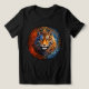 This bold and symbolic fantasy design features a majestic tiger surrounded by an intricate mandala that glows with vibrant cosmic energy. The tiger’s face is split between two elemental forces—fiery orange on one side, and cool celestial blue on the other—highlighting the duality of strength and serenity, chaos and calm. Its piercing heterochromatic eyes—one glowing amber, the other icy blue—add an otherworldly intensity that captures the spirit of balance and power.