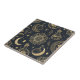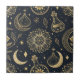 A mesmerizing celestial witchcraft seamless pattern ceramic tile showcasing intricate gold line art of potion bottles, moon phases, constellations, and magical botanicals on a deep black background. This elegant blend of nature and cosmic alchemy captures a mystical, witchy aesthetic perfect for celestial lovers, Halloween, or boho lover.