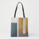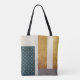 Eleve seu estilo com esta bolsa de tote exclusiva, com uma mistura de designs modernos e artísticos. O saco apresenta um padrão de bolinhas azul, linhas escuras onduladas e faixas verticais em ouro, branco e marrom. Perfeito para uso diário, comprar ou como acessório em moda. Feito de materiais de alta qualidade com alças pretas resistentes para carregando confortável. Personalize-o com o seu slogan ou nome para um toque pessoal.