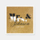 Clássico personalizou o Sr. e a Sra. guardanapos de casamento com Na moda Dourado fundo de brilho. Textura do ouro do rico com fake brily sparkles e glimmers brilhantes. Adicione o nome da noiva e noiva / marido e esposa e a data do casamento. Belo design de tipografia chica com texto elegante. Dourado e preto. Mais combinação de cores disponível. Design de estilo luxuoso para uma aparência e um sentimento ricos.