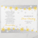 Na moda filas de flocos de neve amarelos e estrelas de cinza prateada em cerimônia dobrada branca e programa de festas que apresentam lindos flocos de neve em amarelo e estrelas de cinza em branco. Um modelo moderno que faz a escolha ideal para um dia de inverno contemporâneo ou um casamento de Natal. Para pegar um programa dobrado, dobre-o ao meio e escolha o tipo de papel de valor para obter melhores resultados.
