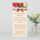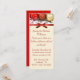Convite festivo para festas, feito em um estoque de cartão longo e fino, com uma fotografia de ornamentos de bola de Natal vermelha e dourada no topo dos convites. Uma fita e um arco com aspecto de cetim vermelho como uma borda entre a parte superior e a área de texto de cor creme. Personalize o texto de acordo com as suas necessidades.