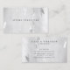 Cartões de visitas simples e elegantes, com uma sensação de luxo, com fontes limpas e modernas sobre um fundo com uma fotografia de sutis pinceladas de tinta em tons de cinza pálida com folha de prata (esta é uma foto de folha de alumínio, não de folha de papel). Esse design mínimo, elegante e profissional funciona para uma variedade de negócios.