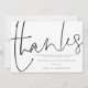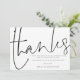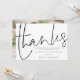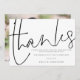 Depois do seu grande dia, diga obrigado em estilo com Obrigados em um script moderno de escrita manual no topo e sua mensagem e nomes abaixo dos quais você pode facilmente personalizar. Nas costas, basta trocar sua foto favorita do seu dia de orientação paisagística por uma amável lembrança para seus convidados.