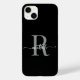 Na moda Girly Elegante Modern Black and Cinza Monograma Nome Inicial Script de Assinatura capas de iphone Personalizada Personalizada. Este design com um nome próprio em uma caligrafia (ou tipografia) bonito com letras maiúsculas e minúsculas de letras maiúsculas e brancas a preto. Fácil personalizá-lo. Excelente presente feminino de aniversário, doce aniversário de 16 anos, dia da mãe, para festa de formatura e é para a garota que ama coisas na moda únicas.