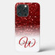 Um monograma clássico e elegante em vermelho sobre fundo branco-na moda, junto com um brilho vermelho falso.