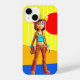 Aqui está uma descrição para a imagem que você forneceu "The Vibrant Cowgirl: A Fusion of Western Charm and Modern Flair" Esta imagem impressionante apresenta uma vaquinha na moda que está confiante em um pano de fundo de cores ousadas e geométricas. Sua roupa combina elementos clássicos ocidentais — completos com um chapéu de cowboy, cinta e botas — com uma reviravolta moderna e fresca. O fundo amarelo brilhante, acentuado com um grande sol vermelho e um ousado primeiro plano azul, dá à imagem uma sensação vibrante, quase surreal. A própria vaqueira incorpora força e brincadeira, segurando uma corda com sua atitude de repouso, mas aventureira. Sua roupa, com uma camisa azul cortada e calças marrons com detalhes sutis, captura a tradição e a tendência. Esta imagem é uma representação perfeita da mistura de temas clássicos ocidentais com uma pop de arte moderna.