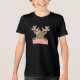 Um design de renas, lúdico e na moda, com brilho, rosa e galhadas douradas, um arco pontilhado de polca na cabeça e uma expressão fofa. As renas espreitam sobre um sinal cor-de-rosa e com padrão dourado, perfeito para decorações festivas com uma torção chic e moderna.