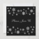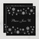 © 2009 Designs socialitas. Nosso elegante floco de neve fluente flocos de inverno ou convite de Natal é perfeito para uma festa de família ou de escritório. Flocos de neve de cinza branca e prateada design num fundo preto. Substitua facilmente o texto do nosso modelo com as suas próprias informações sobre eventos de feriado.