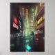 Na rua à noite, você pode ver carros na rua e arranha-céu no fundo. Esta é uma peça de arte gerada por IA