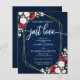 Linda e barata e floral geométrico em convites para casamento de madeiras rústicas azul-marinho. Fácil de personalizar com seus detalhes. NOTA: OS envelopes NÃO ESTÃO INCLUÍDOS; os envelopes do barato A7 estão disponíveis para compra separadamente. PERSONALIZAÇÃO: se você precisar de personalização de design, entre em contato comigo para jogar o bate-papo; se você precisar de informações sobre seu pedido, opções de envio etc., entre em contato com o suporte da Zazzle diretamente https://help.zazzle.com/hc/en-us/articles/221463567-How-Do-I-Contact-Zazzle-Customer-Support-. Verifique se há itens correspondentes na coleção como adesivos da lista de convidados.