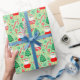 Brincadeiras de natação criativas com nadador de Papai Noel cercado de doces de Natal e biscoitos.