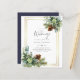 Lindas folhas de Eucalipto e cones de pínus de inverno com sotaques azuis empoeirados aparecem neste outono, outono, itens de casamento no inverno. Parte de uma coleção maior que inclui convites para casamento de orçamento, salvar as datas, RSVPs, obrigado de cartões com fotos, presentes de noiva e festa de casamento e muito mais. Para obter um planejamento GRATUITO detalhado do casamento no inverno, visite weddingdesignchic.com.