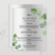 Personalize e adicione seus nomes, data e menu de casamento. Fundo metálico prateado, decorado com verde de eucalipto, prigs.