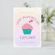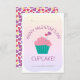 Esta placa de Dia de os namorados de sala de aula plana apresenta um gráfico de um cupcake bonito, acentuado com corações. O texto no cartão diz: Cupcake do Feliz dia de os namorados! A parte de trás desta carta adorável é um padrão cardíaco rosa, roxo e amarelo.