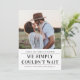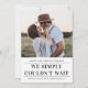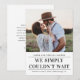 Um anúncio de casamento oportuno com a manchete Não podemos simplesmente esperar. Uma ótima maneira de informar aos entes queridos que vocês se casaram. O verso permite uma mensagem personalizada para amigos e familiares ou pode ser removido, se desejado.