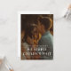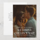 Um anúncio de casamento oportuno com a manchete Não podíamos simplesmente esperar. Uma ótima maneira de informar aos entes queridos que vocês se casaram. O verso permite uma mensagem personalizada para amigos e familiares ou pode ser removido, se desejado.