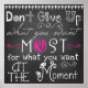 Não Desista de um quadro de chanfro poster com texto branco legal em um quadro de chanfro e um pop de cor-de-rosa brilhante. Este design motivacional e inspiracional diz: "Não desista do que você mais quer para o que você quer no momento"!