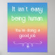 Não é fácil ser um ser humano; você está fazendo um bom trabalho. Palavras com uma espiral digital desenhada à mão e design cardíaca num arco-íris colorem fundo gradiente; perfeitas para este item ou transferidas para outros itens no Zazzle. Personalize se quiser! Projetado no belo Estado de Washington, EUA por uma dupla de artistas freelancos.