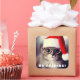 Gato bonito vestindo óculos e chapéu de Papai Noel.