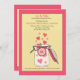 Esta ilustração de jarro de pedreiro desenhado à mão com uma tampa aberta e corações em fuga tem um fundo de bolinhas amarelo emoldurado. É um convite encantador para uma festa de janto de ensaio de casamento.