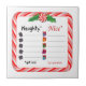 Use este azulejo personalizado como uma trivit ou para atualizar seu decoro de feriados. Aqui está uma gira de menta e uma lista de natal de cana doce para ajudar o Papai Noel a rastrear quem é Naughty ou quem é Nice! Lembre... O maldito ganha carvão. O Bonito fica com PRESENTES! Um toque engraçado perfeito para sua festa de Natal em casa ou no escritório!