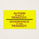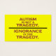 Autismo não é uma tragédia. Ignorância é a tragédia. Design simples de texto somente em autistart.com. Cartões ativistas.
