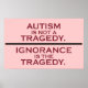 Autismo não é uma tragédia. Ignorância é a tragédia. Design simples de texto somente em autistart.com.