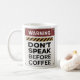 Manhãs brilhantes com o Don't Speak Antes do Café Warning Mug. Apresentando uma citação humorística a que todos os bebedores de café se relacionarão, esta caneca torna mais agradável beber sua cerveja favorita. Excelente para casa, trabalho ou como presente hilário de café.