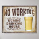 Um poster de aparência vintage com um copo de cerveja embaçada e diz: "Não funciona durante o bebendo". Um poster divertido e divertido.