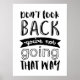 poster de tipografia legal e incrível. Citação inspiradora e motivacional para aliviar seu dia. Não olhe para trás. Você não vai por ali. Largue o passado e concentre-se no futuro. A cor de fundo pode ser personalizada para a cor desejada.