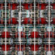 Rolo colorido dos cilindros de snare empilhados e telhados.