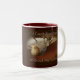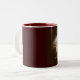 Caneca de dois tons que caracteriza um pica-pau inchado vermelho