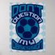 Design de futebol em azul com bola de futebol / futebol e o texto 'Não Questione minha obsessão' à sua volta.