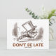 Lembre os outros com qualquer um desses convites oportunos para não se atrasar! Com a imagem do Mad Hatter correndo, junto com o ditado oportuno "Não Se Atrase". Ilustração clássica de John Tenniel encontrada em As Aventuras de Alice no País das Maravilhas de Lewis Carroll. Lembrete de aventura no País das Maravilhas para todos os convidados!