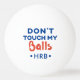 Engraçado, personalizada bola de pingue-pongue com cara humor "não toque nas minhas bolas", citação em duas cores de tinta de sua escolha, mostradas em azul e laranja com um monograma. Agarre alguns para ter certeza de que ninguém rouba suas bolas, ou como uma piada de distanciamento social bobo.