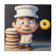 Picture é um animado padeiro 3D feliz com uma pilha de foscos deliciosos Doughnut