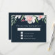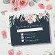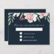Este estilo de aquarela floral RSVP é impresso com uma borda de narciso e folhagem branco e cor-de-rosa sobre um fundo de marinho escuro. Opções de seleção de entrada de menu no verso. O texto está em branco. Todos pré-formatados e prontos para edição com seus próprios detalhes. Veja o convite correspondente e mais peças e outras opções de cor nesta coleção em Monogramas e Monikers no Zazzle.