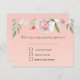 Este estilo de aquarela floral RSVP é impresso com uma borda de narciso e folhagem branco e rosa em tons suavemente graduados de fundo rosa claro. Opções de seleção de entrada de menu no verso. O texto está em preto Todos pré-formatados e prontos para edição com seus próprios detalhes. Veja o convite correspondente e mais peças e outras opções de cor nesta coleção em Monogramas e Monikers no Zazzle.