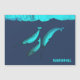 Possui três narvais, Monodon monoceros, nadando sob o gelo ártico. Leitura personalizável de texto, "Narwhal" também é exibido. O narwhal está relacionado à baleia de Beluga e vive no Ártico durante o ano. Encontram-se principalmente nas águas da Gronelândia e do Canadá raramente a sul de 65° de latitude norte. Os machos pesam até 1.600 quilogramas (3.500 lb), as fêmeas pesam cerca de 1.000 quilogramas (2.200 lb). O maior narwhal já encontrado pesava 3.500 libras. Têm a forma de uma beluga e cerca de 4 polegadas de gordura isolante. Os narvais normalmente se reúnem em grupos de cerca de cinco a dez indivíduos. No verão, vários grupos se reúnem formando agregações maiores. Narwhal deriva da velha palavra nár nár nórdica, que significa "cadáver", referindo-se à pigmentação cinzenta e malhada do animal, como a de um marinheiro afogado. Narbalas são mais escuras quando jovens ficam brancos com a idade. A característica mais notória do narval masculino é a sua palheta torcida de 2-3 metros (7-10 pés) de solteiro. É um dente incisivo que se projeta do lado esquerdo da mandíbula superior e forma uma hélice canhota. O nome científico do narwhal, Monodon monoceros, deriva de "um dente de trompa". A bolota pode ter até 3 metros (9,8 pés) de comprimento — em comparação com um comprimento corporal de 4-5 metros (13-16 pés) — e pesar até 10 quilogramas (22 lb). Cerca de um em cada 500 machos tem duas presas, o que ocorre quando o incisivo certo, normalmente pequeno, também cresce. Uma narval fêmea também pode produzir presas, mas isso raramente ocorre, e há um solteiro registrado de uma fêmea com presas duplas. Pensa-se que esse comportamento mantém hierarquias de domínio social. Às vezes, narvais masculinos esfregam suas presas em uma atividade chamada "usinagem". A razão para este comportamento é desconhecida; pode ser "coçar uma comichão" (a base da bolota é normalmente infestada com piolhos); ou a travessia da bolota pode ser uma saudação amigável. A teoria mais aceita para o papel da bolota é semelhante à do homem de leão ou das penas de cauda de um pavão. Pode ajudar a determinar a classificação social, a manter as hierarquias de domínio ou a ajudar os jovens do sexo masculino a desenvolverem as competências necessárias para o desempenho de funções comuns. Raramente se observaram narvais usando a sua bolota por lutarem ou por outros comportamentos agressivos ou por quebrarem gelo marinho em seu hábitat ártico. O Narwhal normalmente prossegue a um ritmo alucinante, respirando lentamente e rolando, mas são notavelmente rápidos quando se sentem ameaçados. Às vezes, eles viagem em pequenos grupos familiares e se comunicam por meio de uma variedade excelente de chiados, trilhos, assobios e cliques. Os narvais têm uma dieta relativamente restrita e especializada. A sua presa é constituída predominantemente por alabote da Gronelândia, bacalhau polar e árctico, camarão e lula Gonatus. Outros itens encontrados nos estômagos incluíram lobo, capelim, ovos de skate e, por vezes, rochas, ingeridos acidentalmente quando as baleias se alimentam perto do fundo. Desconhece-se como é que a narbaleia apanhará a sua presa. Alguns cientistas acreditam que narwhal atormentou sua presa com som, assim como golfinhos. As migrações sazonais em ondas estreitas, com alta fidelidade de retorno a zonas de Verão preferidas sem gelo, normalmente em águas rasas. No inverno, encontram-se principalmente em águas ao largo, águas mais profundas sob gelo grosso, jorrando em fissuras estreitas no gelo do mar, ou pistas. Estreito do Canadá e do inverno da Groenlândia Ocidental regularmente no gelo do estreito de Davis e da Baía de Baffin ao longo do declive continental com menos de 5% de água aberta e densidades elevadas de alabote da Gronelândia. A alimentação no inverno é responsável por uma parte muito maior do consumo de energia por narvais do que no Verão e, como predadores marinhos, são únicos na sua exploração bem sucedida dos ecossistemas árcticos de profundidade. O mais notável de suas adaptações é a capacidade de realizar mergulhos profundos. Quando no inverno, as entrelinhas fazem alguns dos mergulhos mais profundos já registrados para um mamífero marinho, mergulhando a pelo menos 800 metros (2.400 pés) em 15 vezes por dia, com muitos mergulhos chegando a 1.500 metros (4.500 pés). Os mergulhos nestas profundidades duram cerca de 25 minutos, incluindo o tempo passado no fundo e o trânsito para baixo e para trás a partir da superfície. Nos locais de Verão mais rasos, os narvais mergulham a profundidades entre 30 e 300 metros (90-900 pés). Os únicos predadores de narvais além dos humanos são ursos polares e orcas. As pessoas de Inuit podem caçar legalmente esta espécie de baleia para subsistência. O clima norte fornece pouca nutrição sob a forma de vitaminas que só podem ser obtidas através do consumo de foca, baleia e morsa. Quase todas as partes do narval, carne, pele, gordura e órgãos são consumidas. Mattak, a palavra para pele crua e gordura, é considerada uma iguaria, e os ossos são usados para ferramentas e arte. Em alguns lugares na Groelândia, como o Qanaaq, são usados métodos tradicionais de caça, e as baleias são apedrejadas a partir de caiaques feitos à mão. Noutras partes da Gronelândia e do Canadá norte são utilizados barcos de alta velocidade e rifles de caça. Embora as populações pareçam estáveis, o narval foi considerado particularmente vulnerável às alterações climáticas devido a uma área geográfica restrita e a uma dieta especializada. Os narvais que foram trazidos para cativeiro tendem a morrer rapidamente. Na lenda Inuit, a bolota do narval foi criada quando uma mulher com uma corda de arpão amarrada em torno da cintura foi arrastada para o oceano depois que o arpão atingiu um grande entrelaçado. Ela se transformou em uma narval, e seu cabelo,