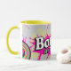 O flashback a quando você era nascido o anos 80 com este projetou excepcionalmente a caneca retro cor-de-rosa e cinzenta brilhante. Poptastic! Artigo projetado exclusivamente por Sarah Trett.