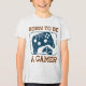 Um design ousado e elegante com dois controladores de jogos azuis com textura em apuros, enquadrado por um contorno retangular. A frase "Nascer de ser um jogador" é exibida em letras laranja grandes e robustas, criando um olhar legal e poderoso.