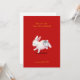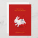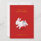 Anuncie o nascimento do seu bebê coelho com uma carta com um coelho que tem a palavra chinesa que significa "coelho" escrita no seu rabo. Escreva a sua mensagem ou cabeçalho personalizado na parte traseira deste cartão. O nascer de bebês entre 22 de janeiro de 2023 e 9 de fevereiro de 2024 terá o coelho como sinal de zodíaco para toda a vida.