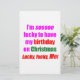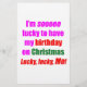 Tenho muita sorte de ter meu aniversário no Natal. Sortudo, sorte minha! Design humorístico e sarcástico para aqueles que tiveram a sorte de ser nasceres no Natal.