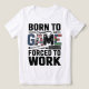Um design de jogos espirituoso e relacionado com a frase "Nascer a jogo, forçado a trabalhar" com tipografia criativa preenchida com controladores de jogos, teclados e elementos de console. Perfeito para jogadores dedicados que desejariam poder passar mais tempo jogando em vez de trabalhar. Excelente para t-shirts, capuzes e presentes para entusiastas de jogos!