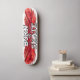Legal skateboard com a menção "Nascer a skate" em uma fonte branca de grafite moderno sobre um fundo de pena vermelha.